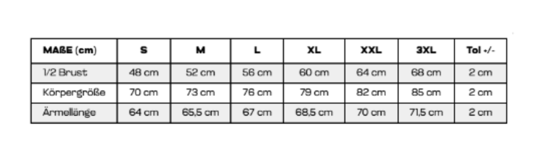 Bitte unbedingt die Größentabelle beachten, um die optimale Passform zu gewährleisten.